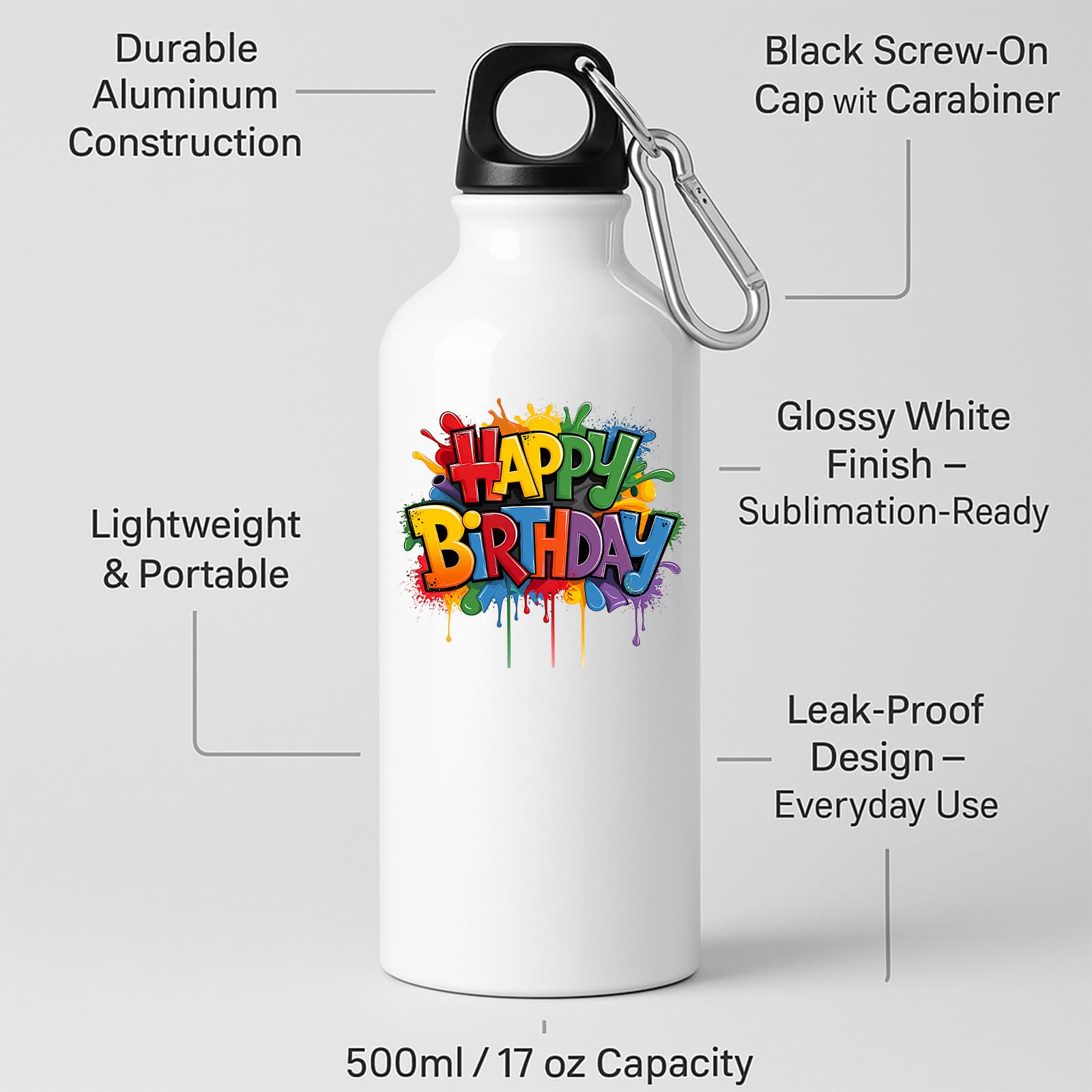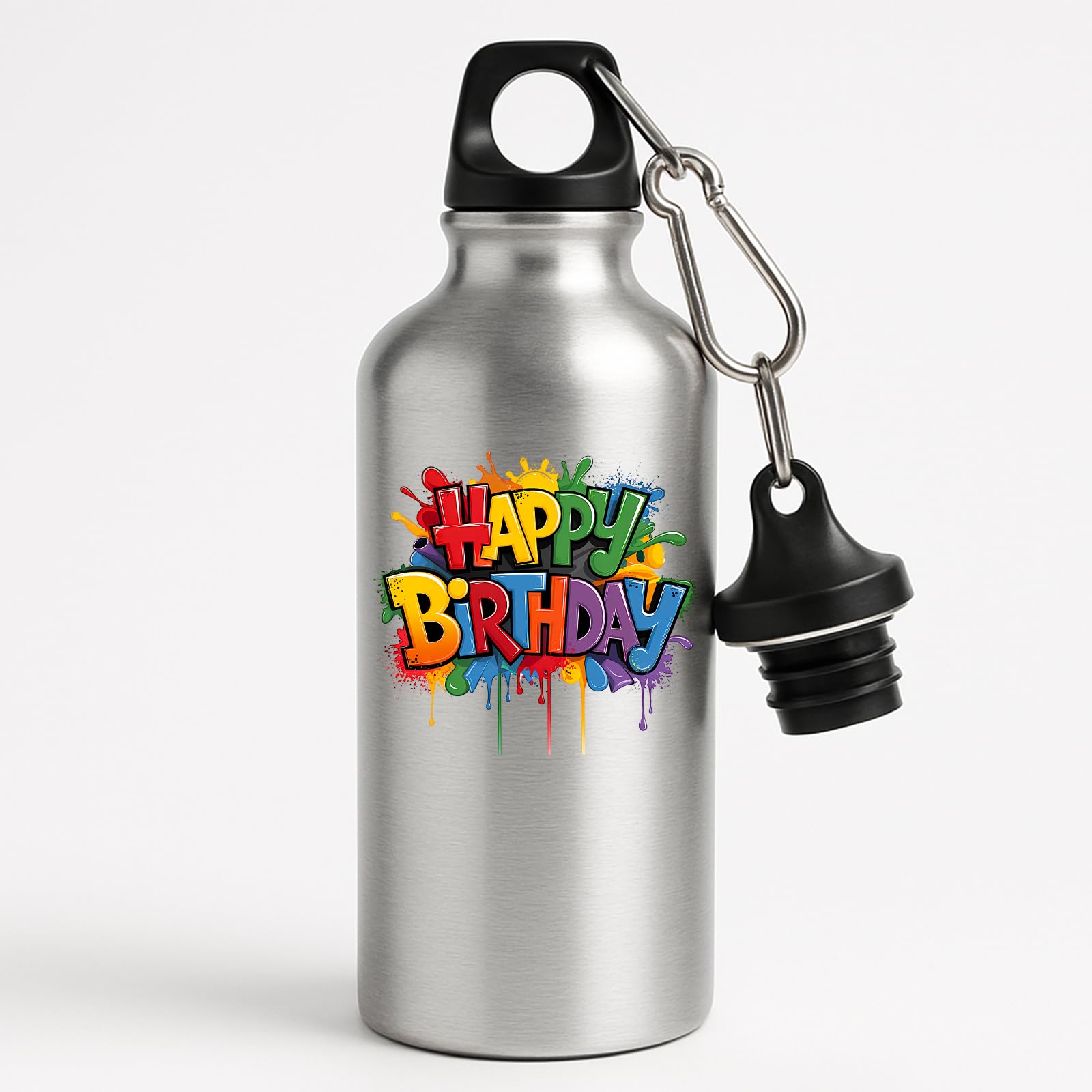 Happy Birthday Water Bottle Colourful Reusebale Fun Surprise Gift Present Birthday for Him Her or Kids Drink for School Travel Gym or outsider Office Easy to Use Lightweight