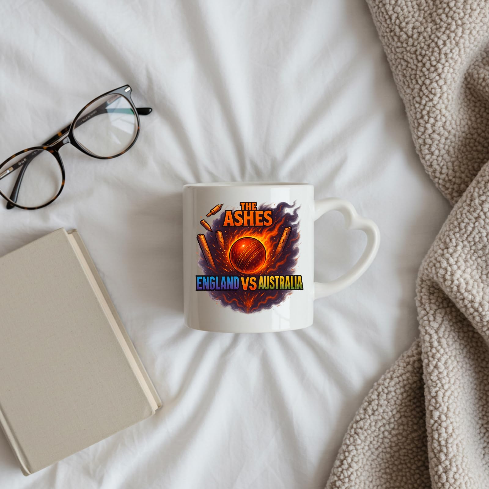 Excudo Trade LTD The Ashes Burning Ball England Vs Australia Rivalry Cricket Heart-Shaped Handle Mug Fiery Design Gift Fans Couples Coffee Cup Home Decor Couples