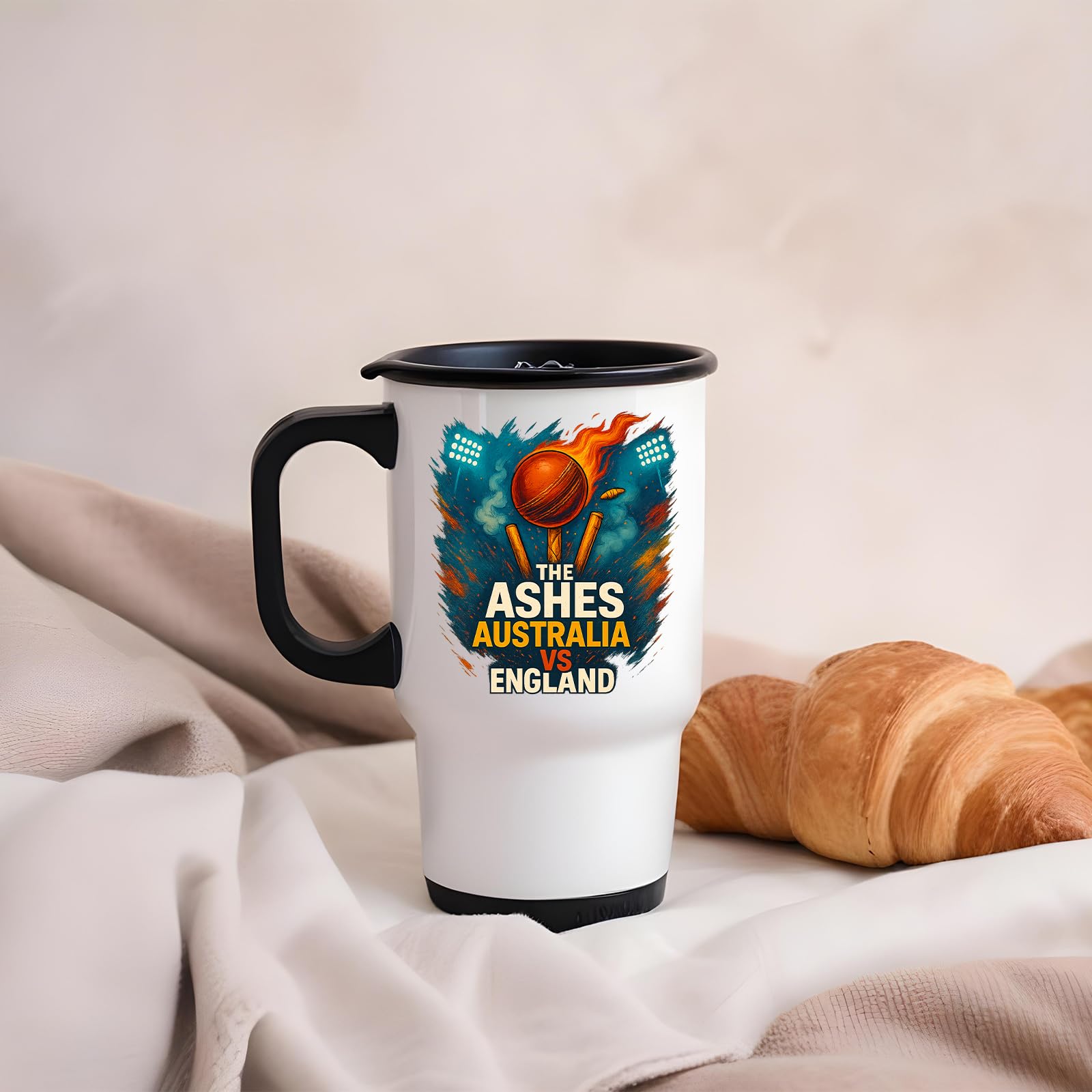 Excudo Trade LTD The Ashes Cricket Australia vs England Fiery Sports Rivalry Travel Mug Outdoor Office Leakproof Hot & Cold Drink Tumbler Insulated Portable