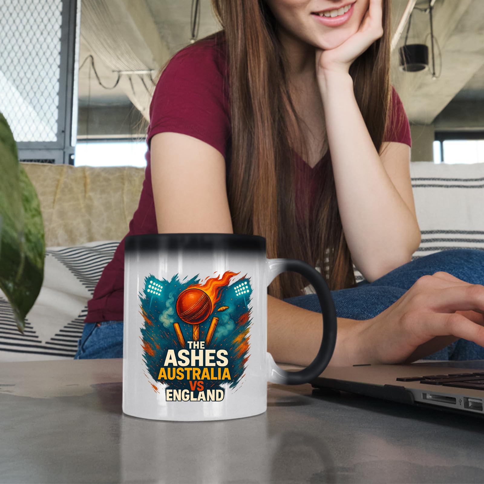 Excudo Trade LTD The Ashes Cricket Australia vs England Rivalry Cup Magic Heat Reveal Cricket Mug Fiery Design Appears with Hot Drink Fun Gift
